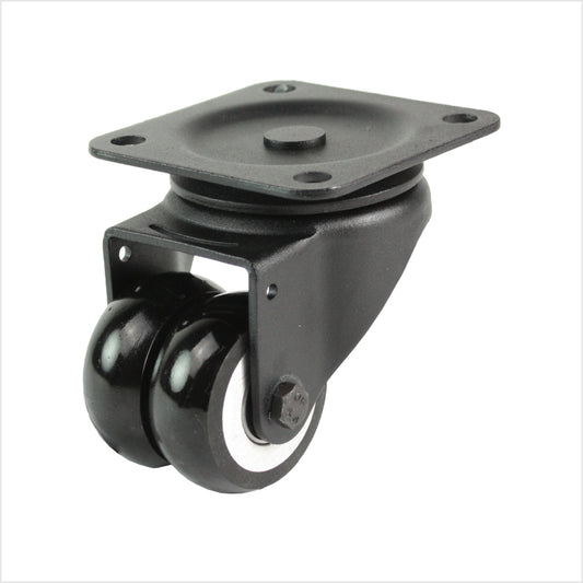 75 mm - Schwarze Doppel-Lenkrolle mit Plattenbefestigung
