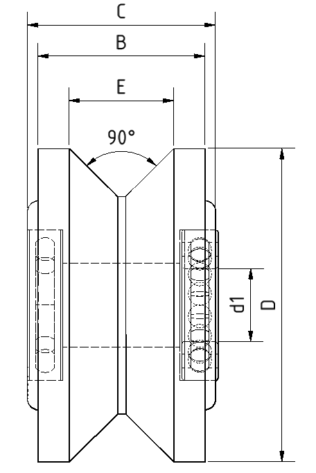 V-Nut Rollen besitzen eine 90°-Nut in der Lauffläche (auf Wunsch anpassbar). Dadurch eignen sie sich ideal als Lauf- oder Tragrollen auf Winkelprofilen oder versetzten Vierkantprofilen. Die Profile können als Schiene am Boden, an der Wand oder an der Decke montiert werden und dienen zur Führung von Transportgütern. Ebenso lassen sich V-Nut Rollen für Laufkatzen einsetzen, die an einer Winkelschiene aufgehängt und bewegt werden.