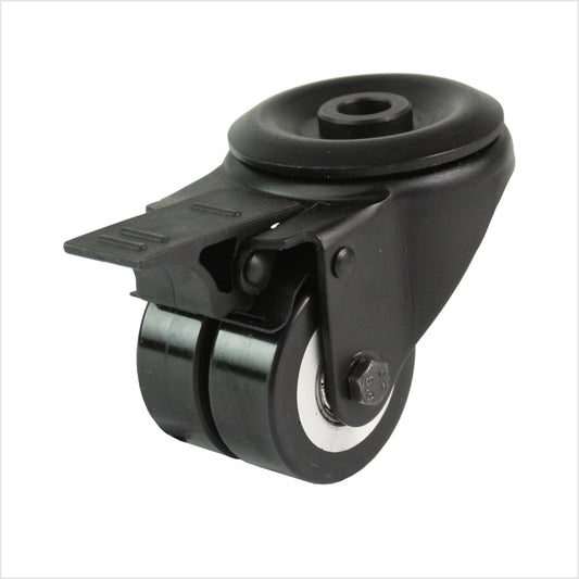 50 mm mini-Schwerlastrolle - schwarze Doppel-Lenkrolle mit Rückenloch und Feststeller flach & ballig