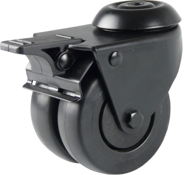 50 mm - Zwart dubbel zwenkwiel met boutgat en rem